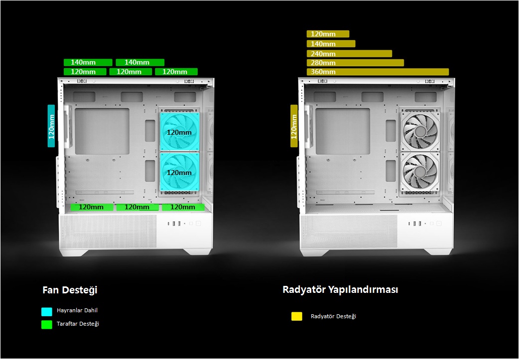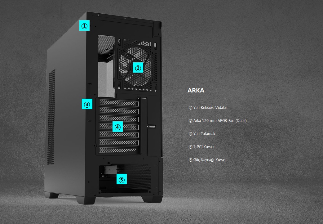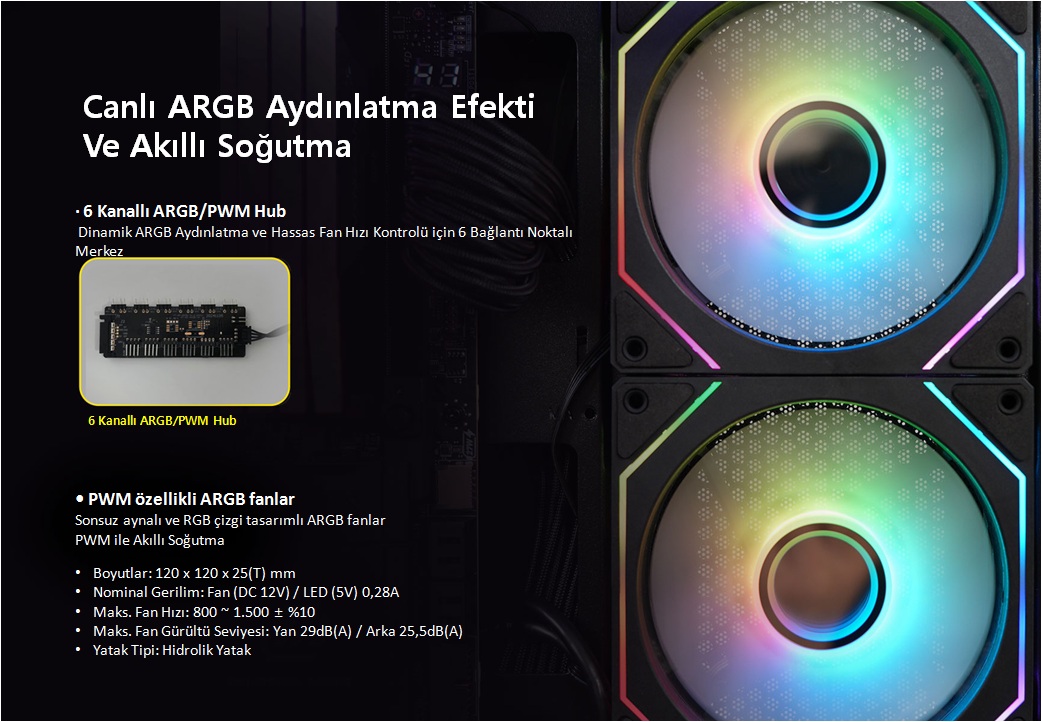 1 X Mikrofon, 1 X Kulaklık, 3 X 120mm ARGB Fan