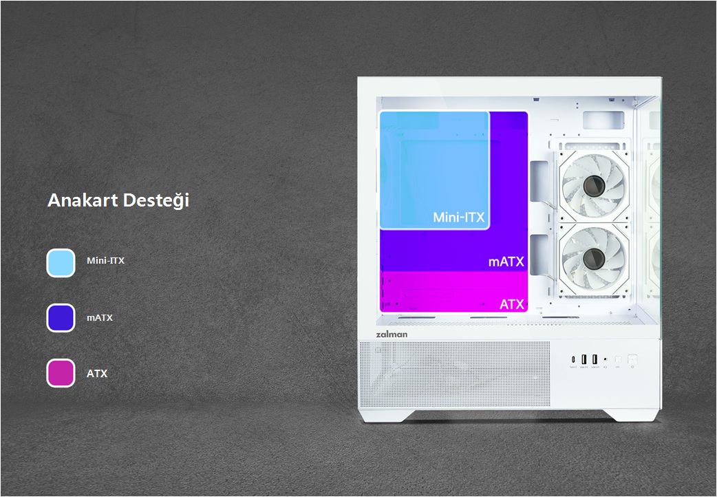ZALMAN CHRONIX V2 ATX MID TOWER SIYAH KASA 1 X USB 2.0, 1 X USB 3.0, 1 X USB Type-C (5 Gbps),
